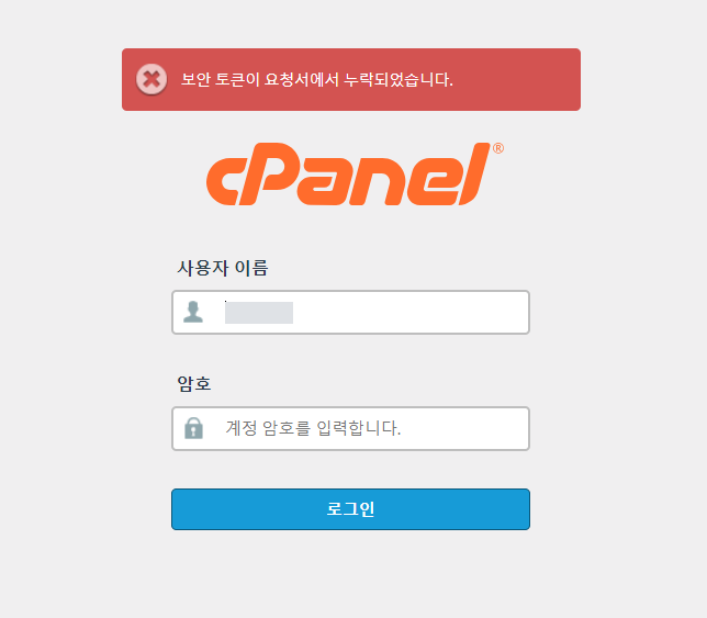 cPanel URL에 접속하면 cPanel 로그인 화면이 표시됩니다.