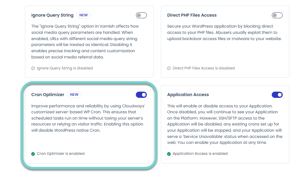 Cron Optimizer(크론 최적화)를 활성화하였습니다.