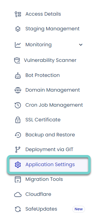 또한, 문제가 되는 애플리케이션의 관리 페이지에서 Application Settings로 이동하여,