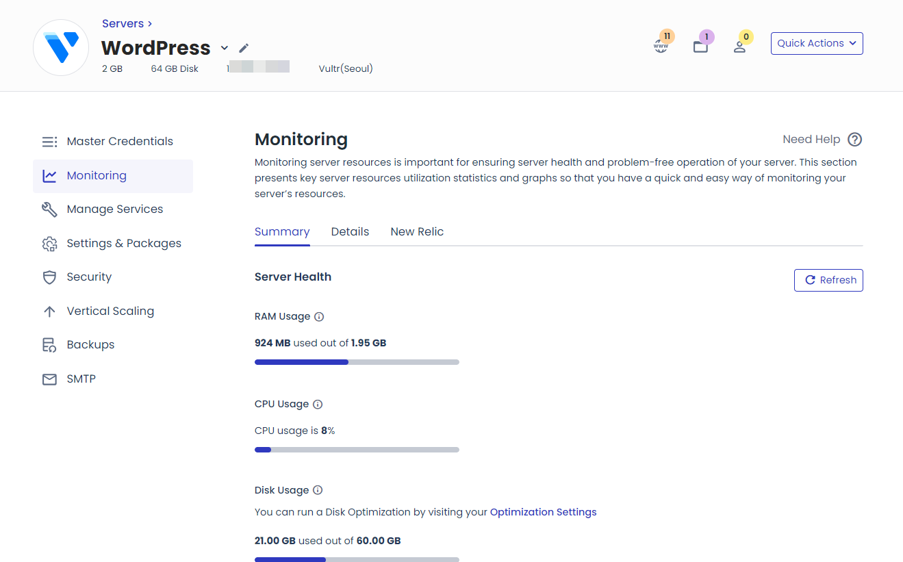 일시적으로 방문자가 급증하여 사이트 접속에 어려움을 겪는 경우에는 서버를 재시작하면 임시방편으로 서버가 안정화될 수도 있습니다.