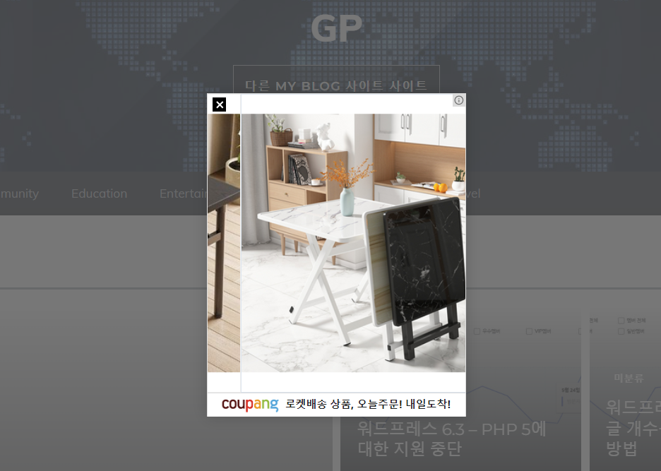 사이트 방문 시에 쿠팡 다이내믹 배너가 팝업으로 표시되는 경우가 간혹 있습니다. 워드프레스 블로그에 쿠팡 다이내믹 배너를 팝업으로 표시하는 작업을 최근 수행했습니다.