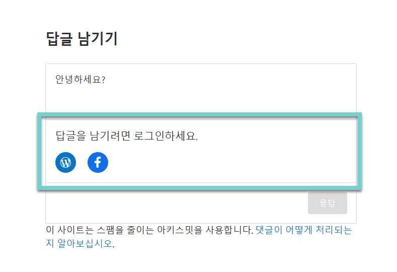[요약*1) 가입형 워드프레스에서 로그인한 사용자만 댓글을 달 수 있도록 하면 워드프레스닷컴 또는 페이스북 계정에 로그인한 사용자만 댓글을 달 수 있습니다.