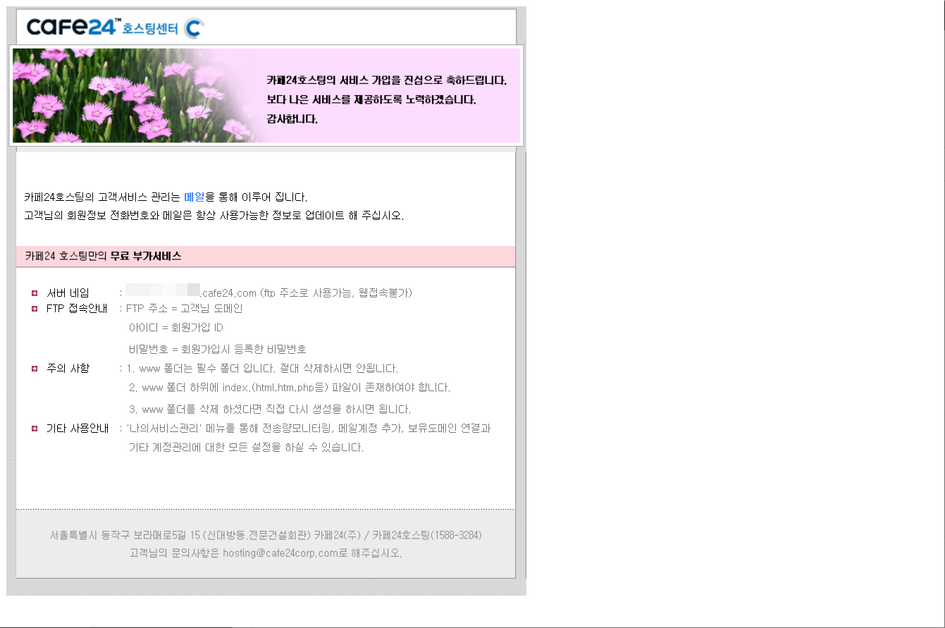 호스팅관리 » 연장/변경/추가옵션 » 변경신청으로 이동합니다.