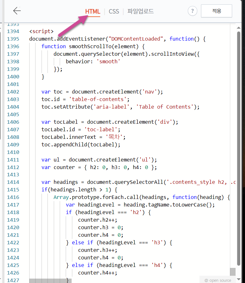 심플한 티스토리 자동 목차 스크립트