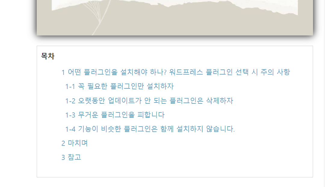 👉 동일한 스크립트를 이용하여 워드프레스용 목차도 만들 수 있습니다. 스크립트를 네이버 카페 게시글에서 확인할 수 있습니다.
