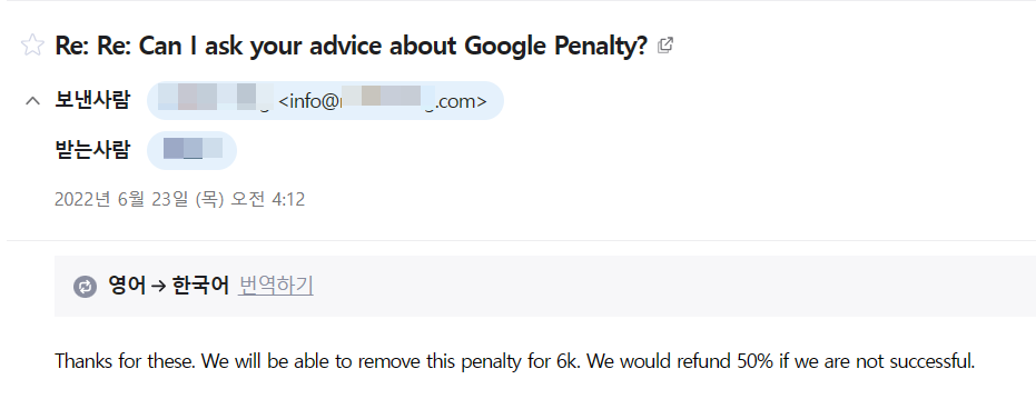 저는 구글로부터 직접 조치를 당한 후 방문자 수가 1/10로 급감했습니다.