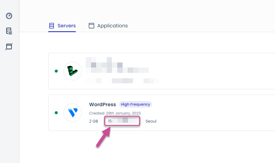 서버 IP 주소는 클라우드웨이즈의 서버 목록인 서버 관리 페이지, 또는 애플리케이션 관리 페이지에서 확인할 수 있습니다.