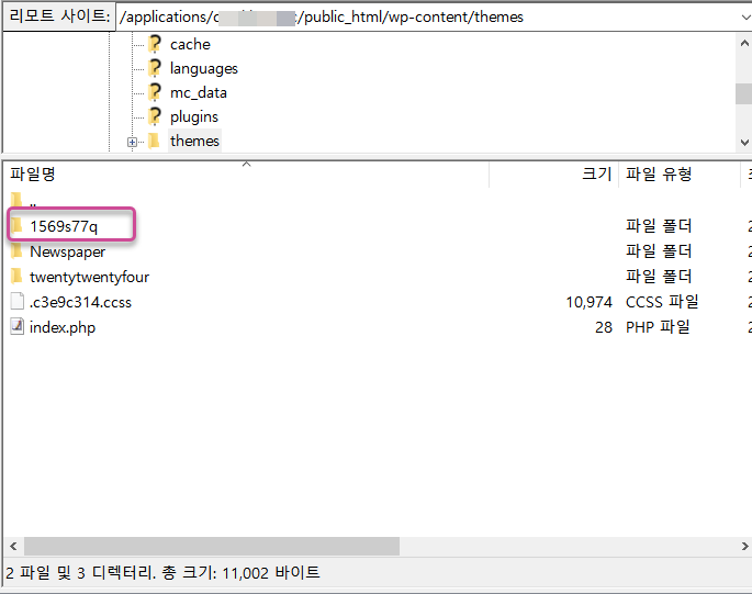 또한, 테마 폴더에도 이상한 테마가 설치되어 있었습니다.