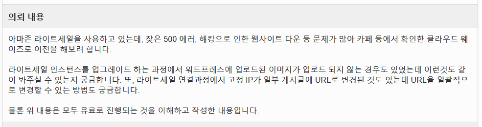 클라이언트께서는 아마존 라이트세일에서 운영 중인 사이트가 잦은 500 에러, 해킹으로 인한 사이트 다운 등 문제가 많아서 클라우드웨이즈로 이전하기를 원했습니다.