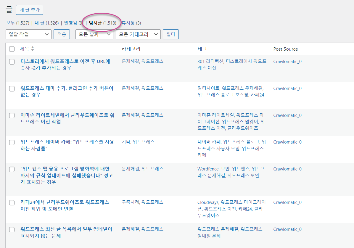 Crawlomatic 플러그인을 구입하여 플러그인 판매자의 도움을 받아 티스토리 블로그 글들을 워드프레스로 옮기는 작업을 해보았습니다.