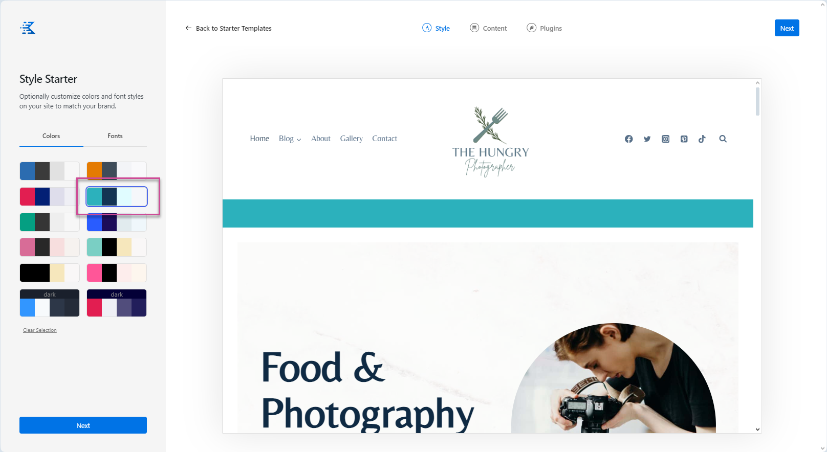컬러 스타일을 선택하면 전체적인 색상 스타일이 바뀌게 됩니다. Next 버튼을 클릭합니다.