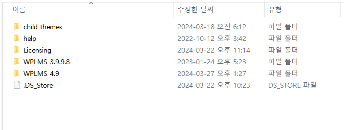 WPLMS 3.9.9.8 버전과 WPLMS 4.9 버전(3월 27일 기준)이 각각의 폴더에 들어 있습니다.