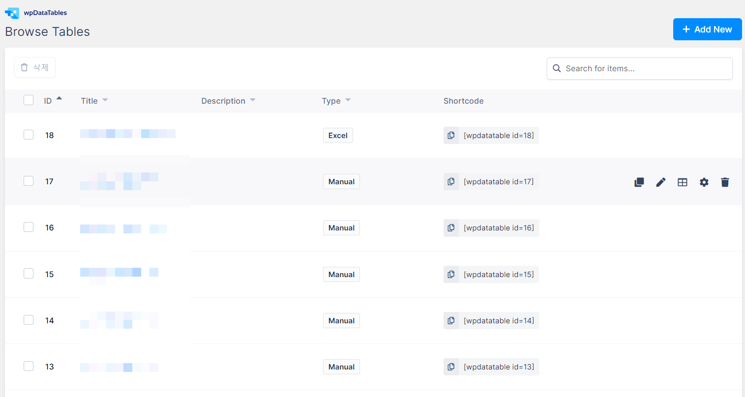 워드프레스 DB 데이터를 표 형식으로 표시하는 방법 - wpDataTables 플러그인 (테이블 & 차트 생성)