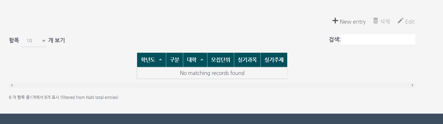 이전 후에 wpDataTables로 만든 테이블에서 오류가 발생했습니다. 아래와 같이 No matching records found 에러가 표시되었습니다.