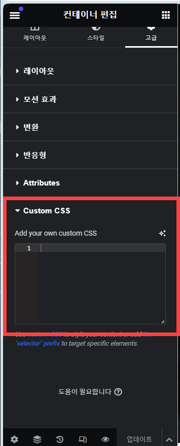 엘리멘터(Elementor)에 커스텀 CSS 추가 시 오류가 표시되는 경우
