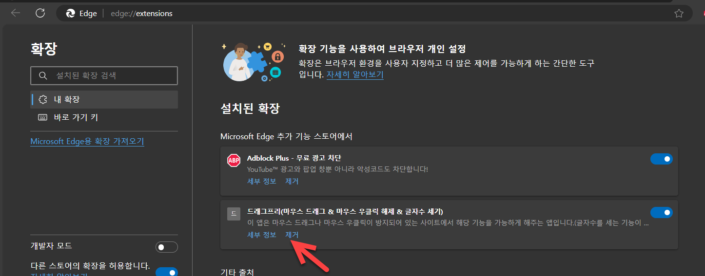 드래그프리 확장 기능 제거하기