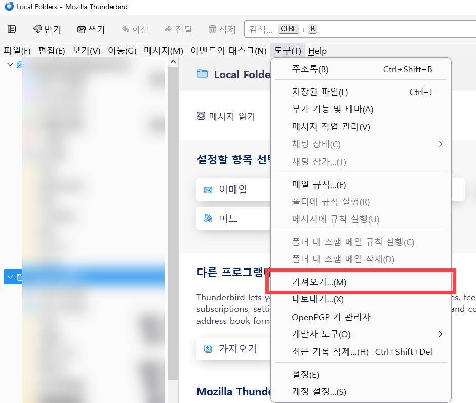 백업 파일을 다운로드하는 경우 썬더버드 이메일 클라이언트 프로그램에서 가져오기 기능을 사용하여 데이터를 가져올 수 있을 것 같습니다. (테스트를 하지 않아서 원하는대로 작동할지는 확신할 수 없지만, 보통 메일 가져오기 기능이 이메일 프로그램에서 제공됩니다.)