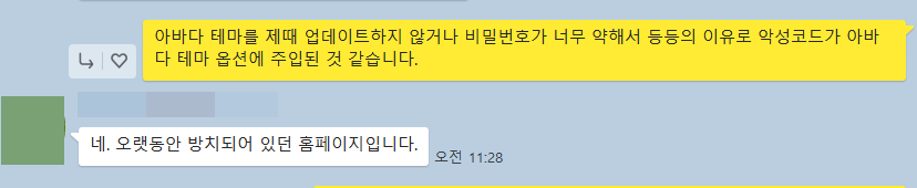 이번 건의 경우 사이트가 오랫동안 방치되면서 악성코드에 감염되었고, 클라께서 직접 악성코드에 감염된 파일들을 제거했지만 문제가 해결되지 않았습니다.