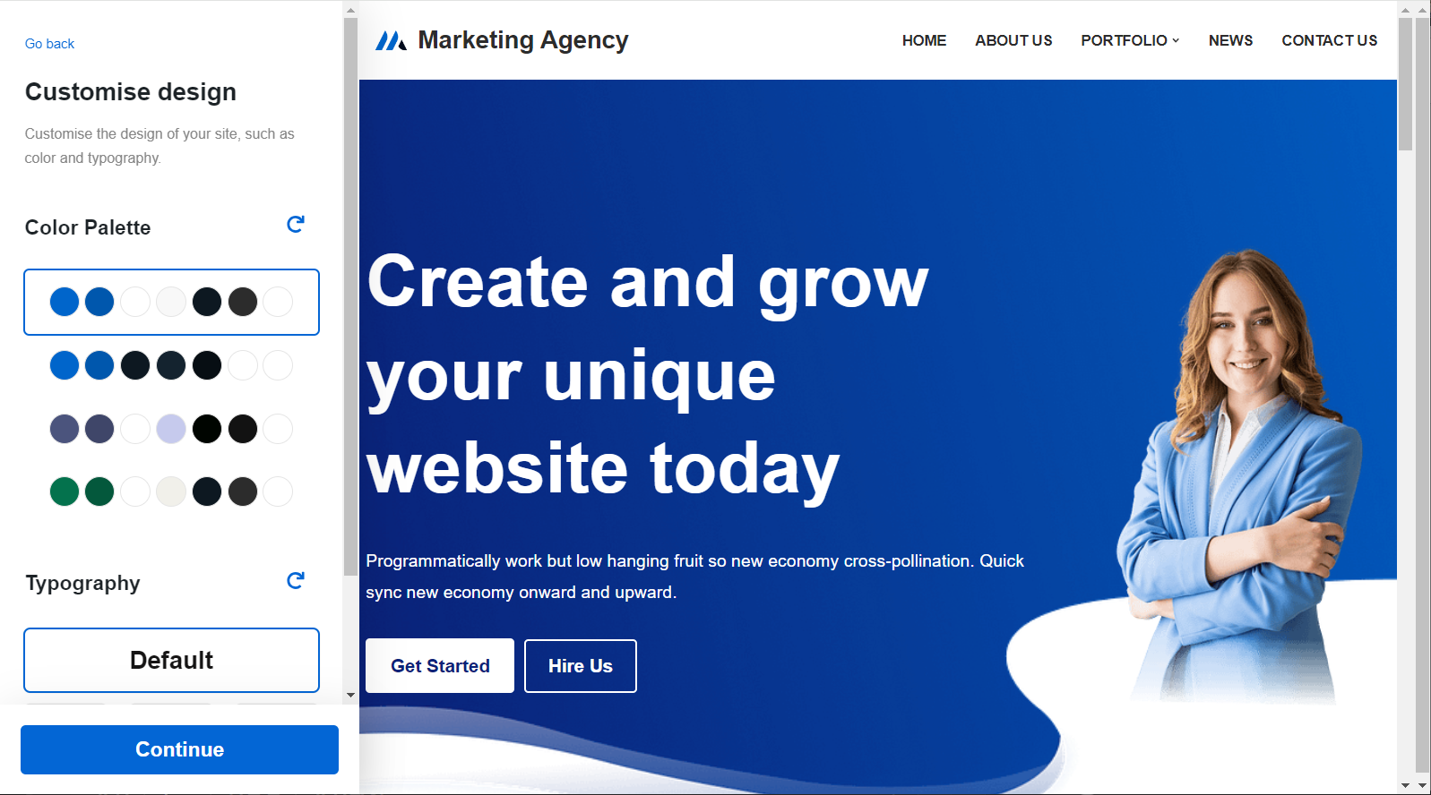 컬러와 타이포그래피를 변경할 수 있는 페이지가 표시됩니다.