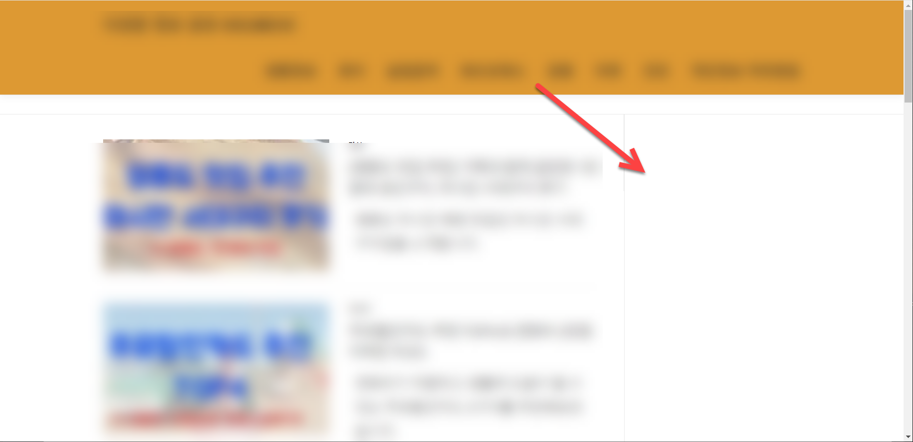 만약 아래 그림과 같이 사이드바가 표시되지 않고 콘텐츠가 왼쪽을 중심으로 표시된다면 사이드바 설정을 체크하여 적절히 설정해야 합니다.