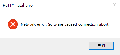SSH에서 시도하니 300MB 정도까지 업로드되고 에러가 발생했습니다. Network error: Software caused connection abort 에러가 표시되었습니다.