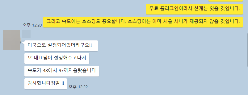실제로 캐시 플러그인과 최적화 플러그인을 사용하여 세팅하니 속도가 개선되는 효과가 있었습니다.