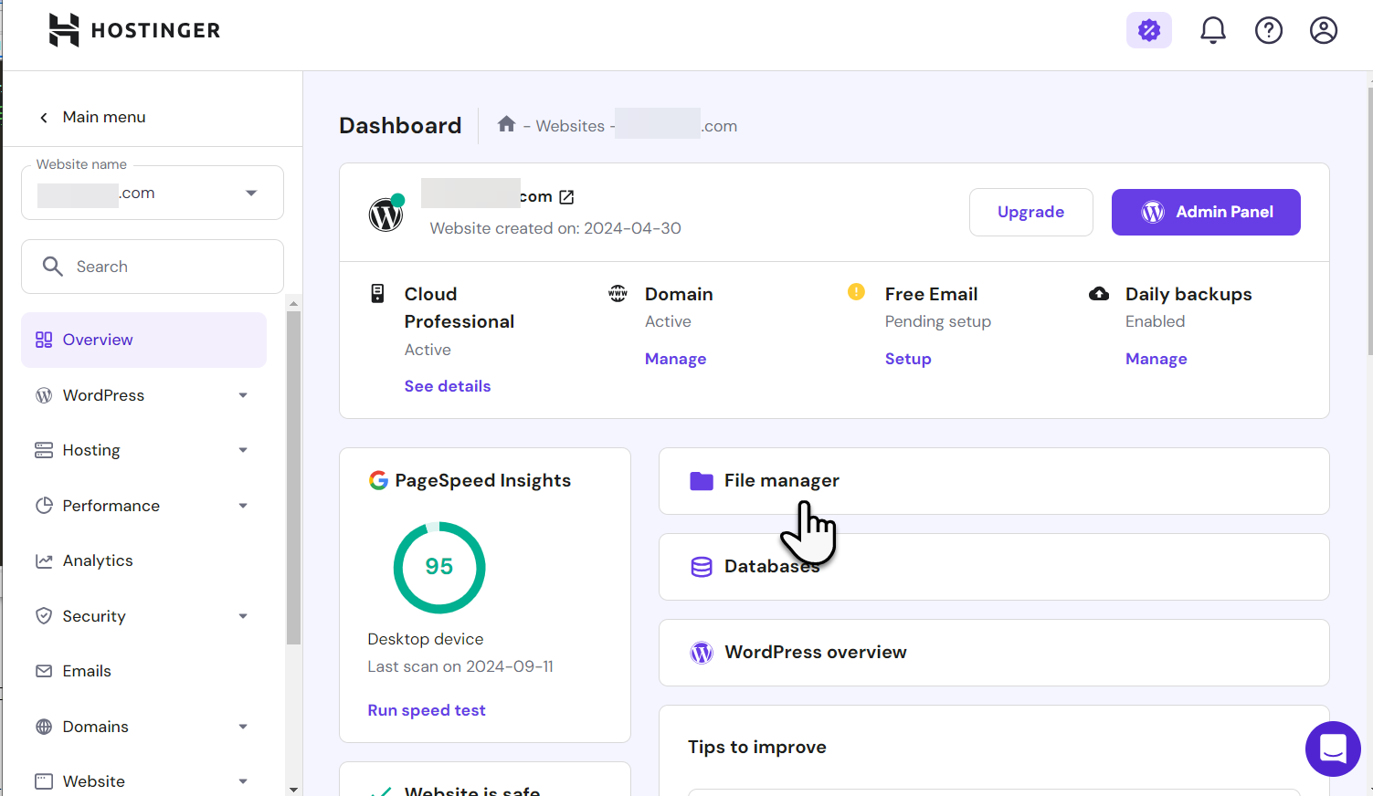 호스팅어 (Hostinger) 웹호스팅 파일 매니저 사용 방법