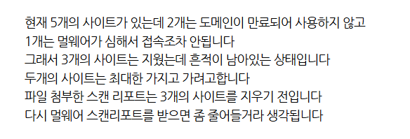 참고로 DB에서 악성코드로 의심되었던 스크립트가 2,000개 이상 발견되었는데, 일부는 클라께서 직접 사이트에 추가한 스크립트라고 하네요.