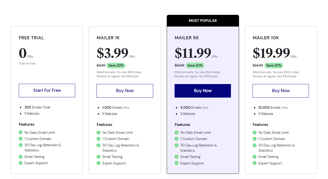 3. 메일 발송량은 월 최대 10,000건으로 제한됩니다.