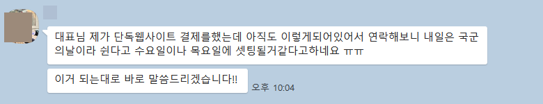 카페24에서 단독호스팅을 신청하려는 경우 평일 영업시간 종료 몇 시간 전에 신청하면 안전할 것 같습니다. 퇴근 시간 임박하여 신청하면 다음날 세팅이 될 수 있습니다. 최악의 경우 이 경우처럼 2~3일 지나서 세팅될 수도 있습니다.
