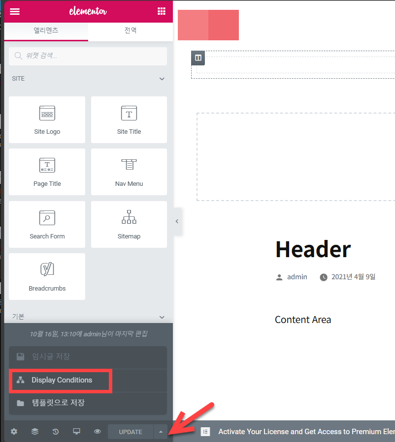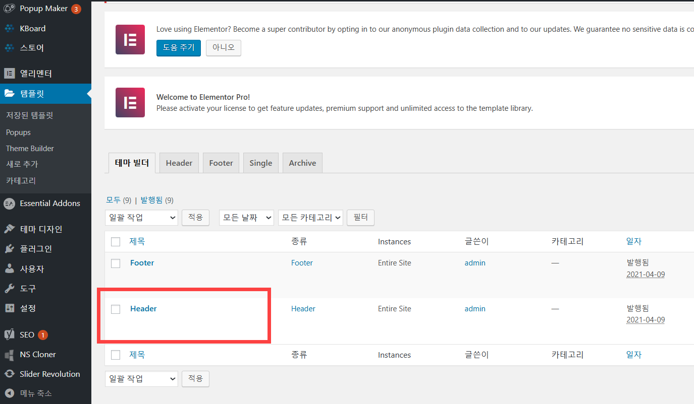 워드프레스 엘리멘터 헤더 템플릿 만들기 (헤더 & 푸터 커스텀)