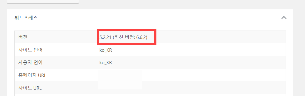 문제의 사이트의 경우 살펴보니 워드프레스 버전이 5.2.21로 다소 낮은 편이었습니다. 2024년 10월 현재 최신 버전은 6.6.2 버전입니다.
