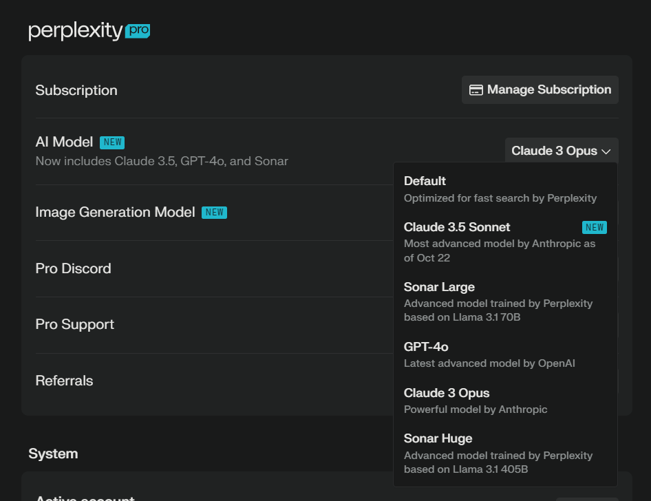 Perplexity Pro로 전환한 후에 살펴보니 다양한 AI 모델이 지원되네요.
