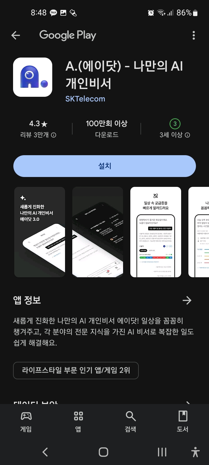 안드로이드 사용자인 경우 구글 플레이에서 SK 텔레콤에서 제공하는 A.(에이닷) 앱을 설치하여 Perplexity Pro를 신청할 수 있습니다.