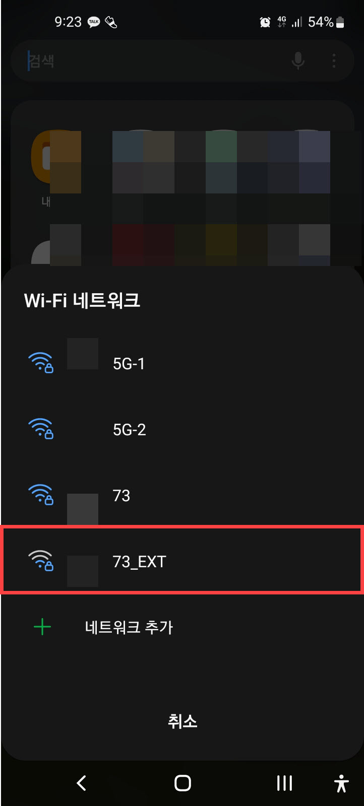제대로 연결되면 와이파이 신호 이름 옆에 붙는 _EXT로 끝나는 무선 와이파이 연결이 추가로 검색됩니다.