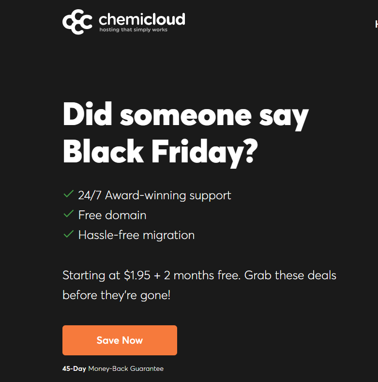 케미클라우드는 서울 서버를 도입하면서 우리나라에서도 사용자가 늘고 있습니다. 블프 기간 동안 할인된 가격에 호스팅에 가입할 수 있고 2개월 무료로 사용할 수 있습니다.