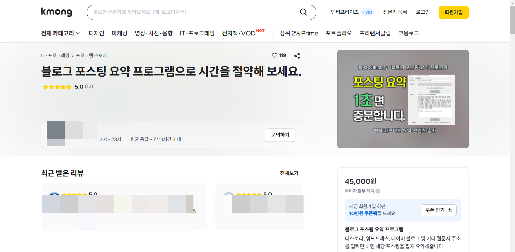 크몽에 티스토리, 워드프레스, 네이버 블로그 및 기타 웹문서 주소를 입력만 하면 해당 포스팅을 짧게 요약해 주는 블로그 포스팅 요약 프로그램이 판매되고 있습니다.