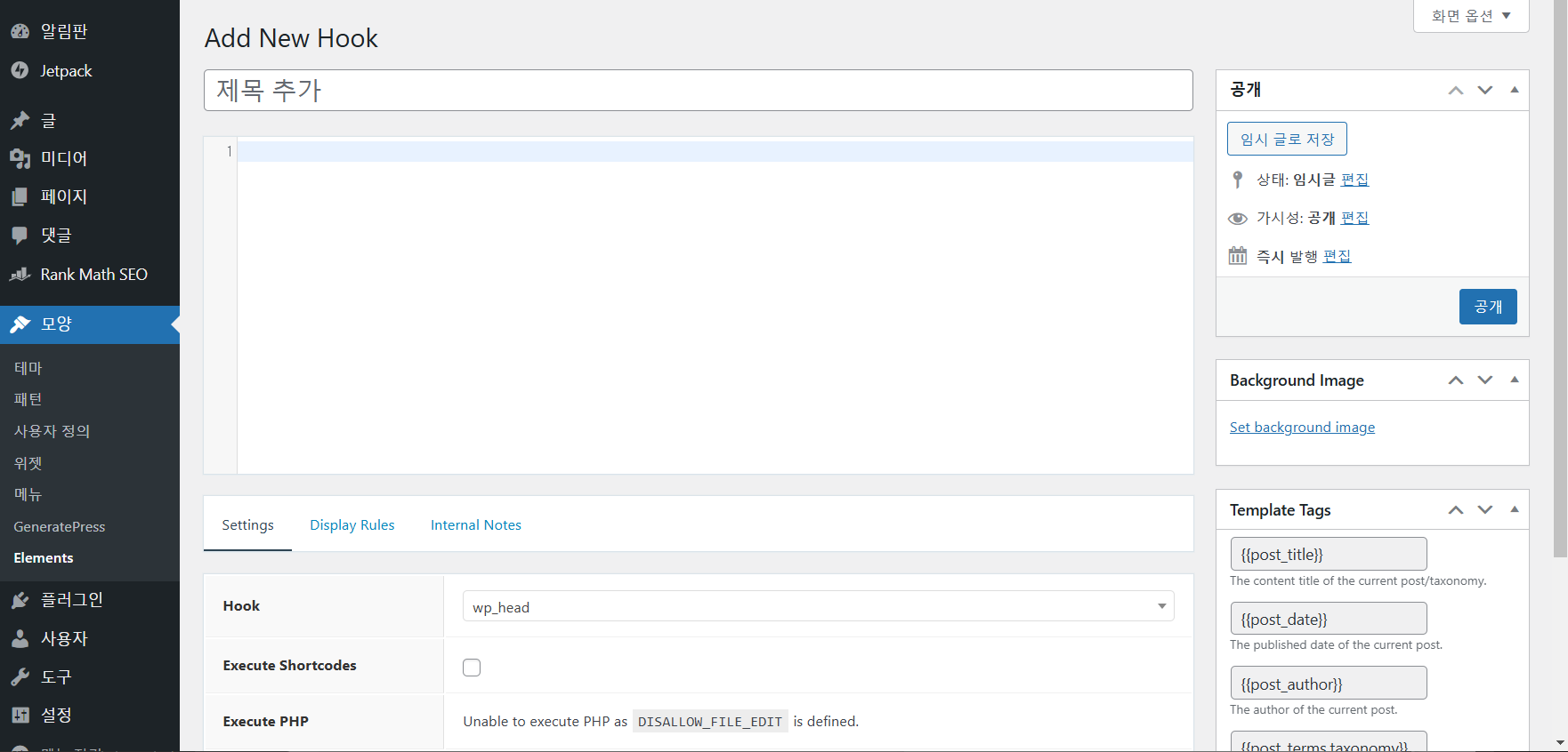 GeneratePress 테마 후크 사용하기 - 워드프레스 정보꾸러미