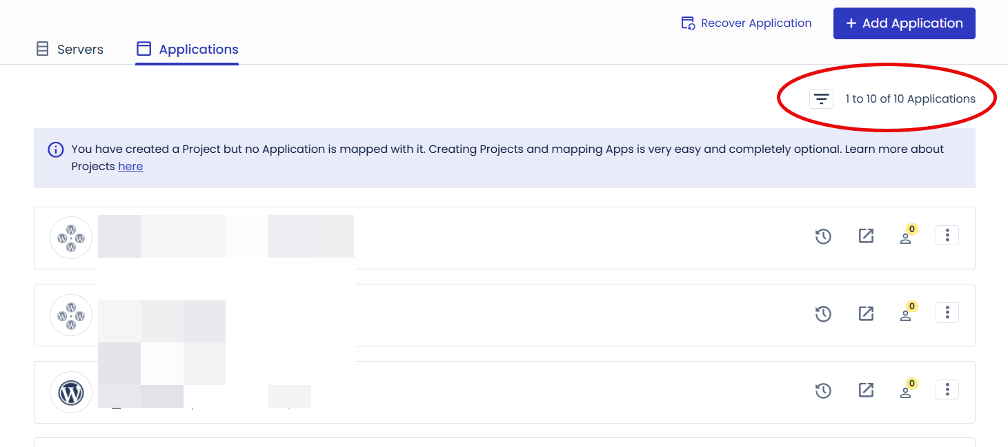 저는 4GB 램 서버(128GB 웹 용량)를 이용하고 있고 총 10개의 애플리케이션(워드프레스 사이트)을 추가했습니다. 일부는 멀티사이트이기 때문에 실제 워드프레스 사이트 수는 거의 20개에 달합니다.😄