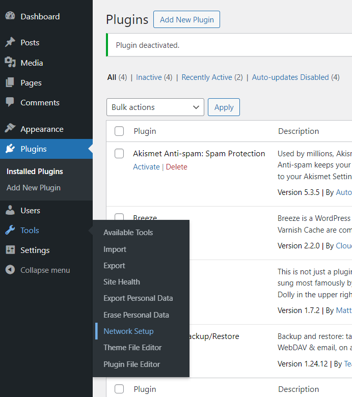 도메인이 연결되면 클라우드웨이즈에 설치된 워드프레스에 로그인하여 멀티사이트를 설치한 다음, 사이트 이전을 시작할 수 있습니다.
