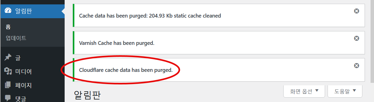 워드프레스: 클라우드플레어(Cloudflare) 캐시 삭제 방법