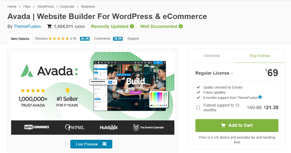 참고로 베스트셀링 테마인 Avada 테마는 현재 100만 개가 넘는 판매를 기록하고 있는 레전드 테마입니다.😄 아바다는 초보자도 쉽게 사이트를 만들 수 있는 다목적 테마로서 많은 사용자로부터 사랑을 받고 있습니다. 하지만 너무 많은 기능을 제공하기 때문에 최적화가 제대로 이루어지지 않으면 사이트가 느려질 우려가 있고 블로그 운영에는 적합하지 않을 수 있습니다.