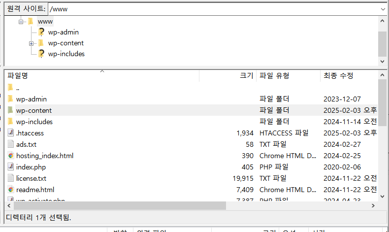 데이터는 FTP에 접속하여 백업했습니다.