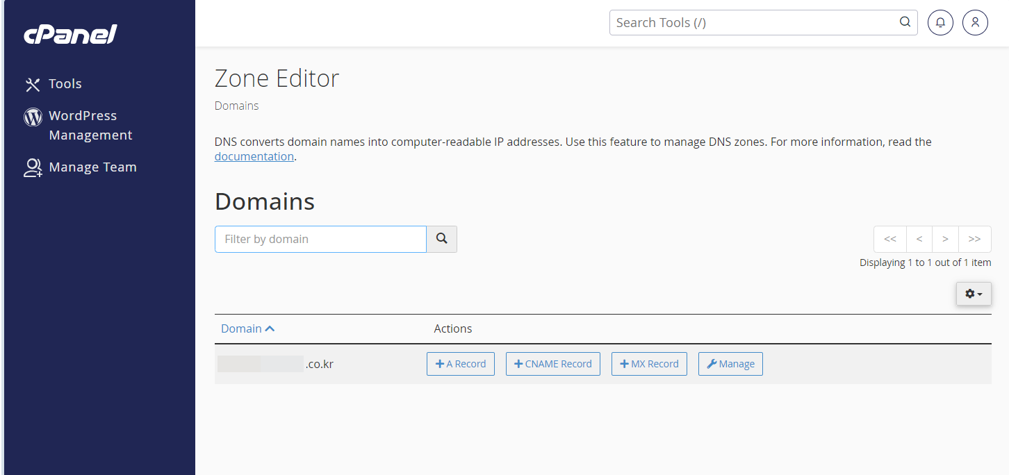 추가적인 DNS 레코드 설정이 필요한 경우 케미클라우드의 cPanel에서 DNS 레코드 추가가 가능합니다.