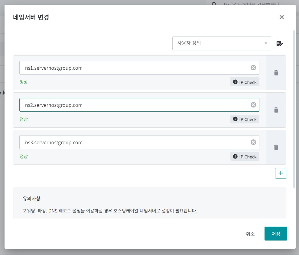 도메인이 호스팅KR에 등록되어 있어 호스팅KR에서 네임서버를 변경했습니다.