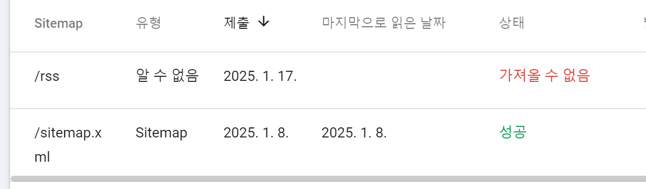 구글 서치 콘솔에서 RSS 피드를 제출하면 아래 그림과 같이 "가져올 수 없음" 상태가 될 수 있습니다.