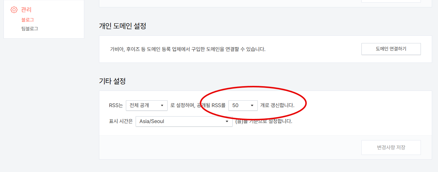 티스토리에서 RSS 항목 수는 기본적으로 50개로 설정되어 있습니다.