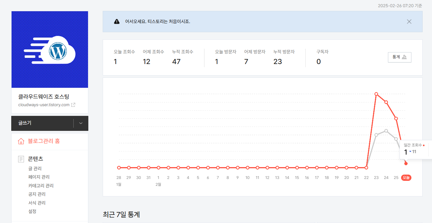 저는 며칠 전에 클라우드웨이즈 호스팅에 대한 모든 내용을 다루는 글을 작성하기 위해 티스토리 블로그를 하나 개설하고 글을 매우 길게 하나 작성했습니다.
