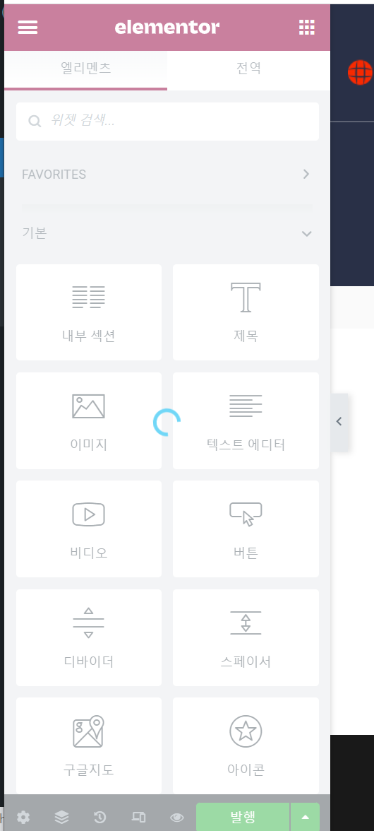 예를 들어, 메모리가 부족하면 엘리멘터 페이지 빌더의 편집 위젯 화면이 로드되지 않을 수 있습니다. 다음 그림과 같이 로드 중 화면이 계속 표시될 수 있습니다.